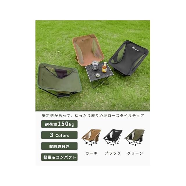 MOON LENCE アウトドア チェア ローチェア キャンプ 椅子 グランドチェア 軽量 折りたたみ コンパクト ハイキング お釣り 焚き火 登山 耐荷重150kg (ブラック2個セット)