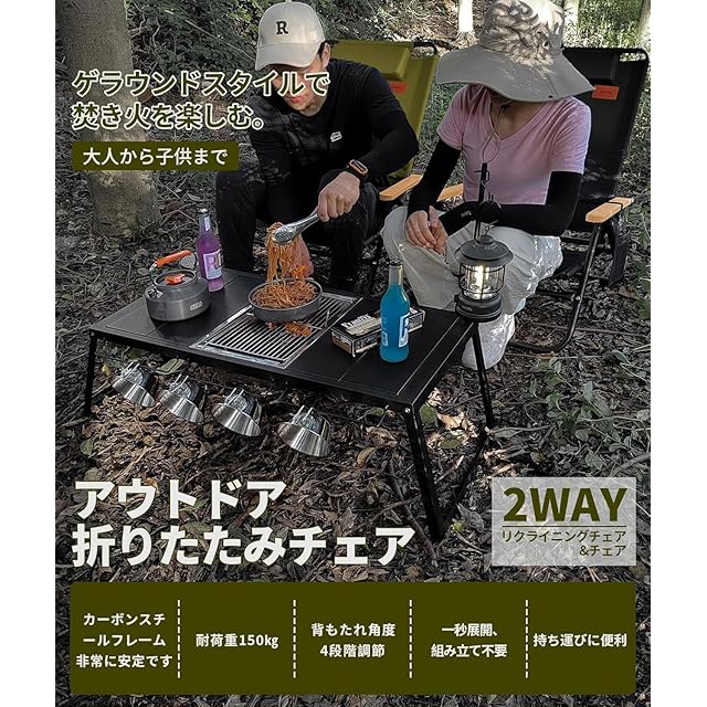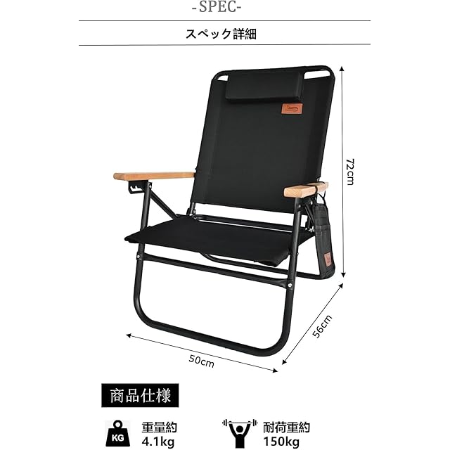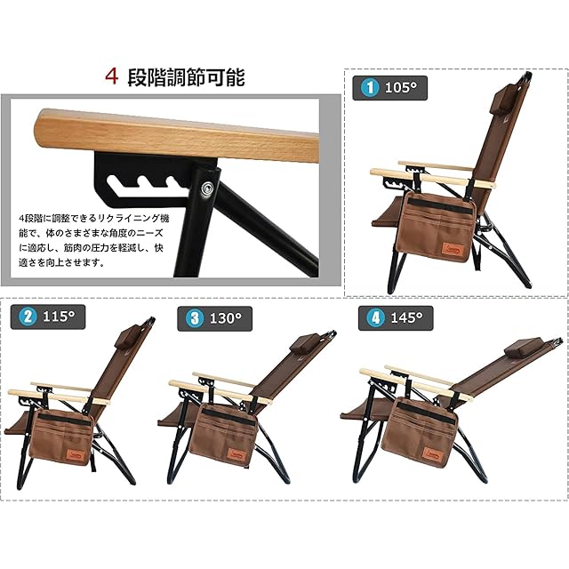 ✅【商品詳細】重量:約4.1kg 耐荷重:150kg●使用時サイズ:(約)幅50cm×奥行56cm×高さ72cm。座面とバックの角度:(約)105°-117.5°-130°-145°座面の高さ25cm●収納時サイズ:(約)57cm×67cm×6cm。【4段階調節可能】背もたれは4段階で調整でき、お好みの角度でゆったりと背中を預けます。この折り畳みアウトドアチェアーは多場合で利用できる両用タイプ屋外リクライニングチェアです。
