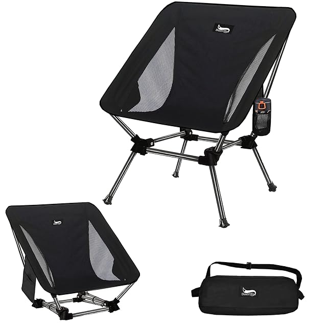 DesertFox キャンプ椅子 アウトドア チェア 2WAY 高さ調節可能 ローチェア 軽量 【独自開発のカップホルダー】 耐荷重150kg コンパクト イス ロータイプ 収納袋付属 携帯便利 ST(黒,スタイルA)
