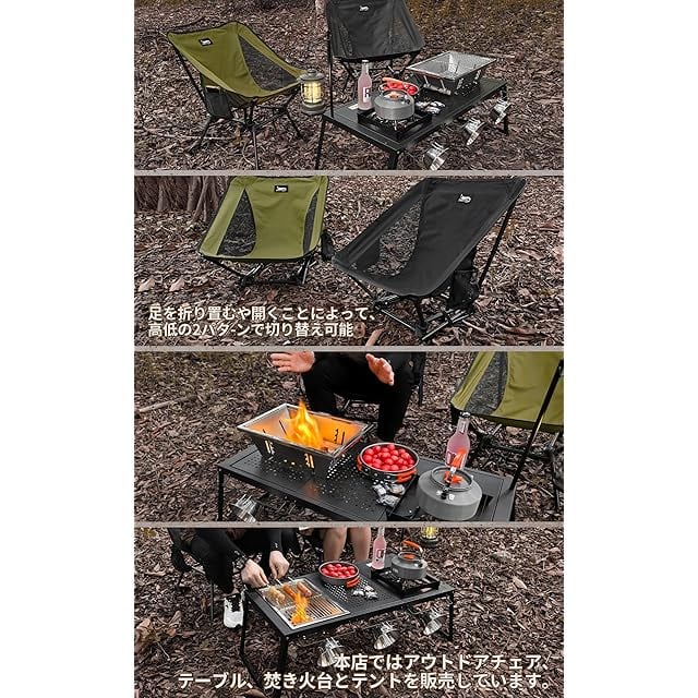 ✅【高さ両パターンで切り替え可能】足を折り畳むや開くことによって、グランドとノーマルスタイルの両パターンで切り替え可能。焚き火に近づき暖まることや、足を伸ばすことができ、より多くのシーンで大活躍!✅【四角形フレームでより安定】伝統的なキャンプ椅子と違い、座面の下のフレームは四角形となっていて、全体的に安定性がアップグレード!