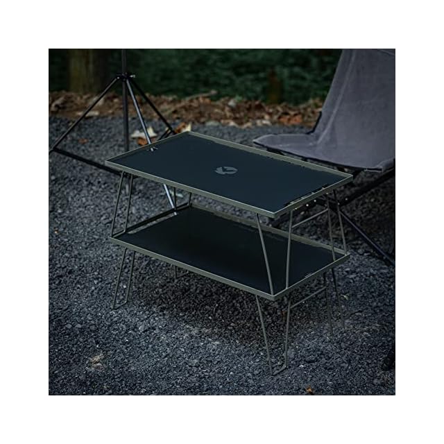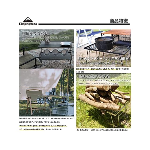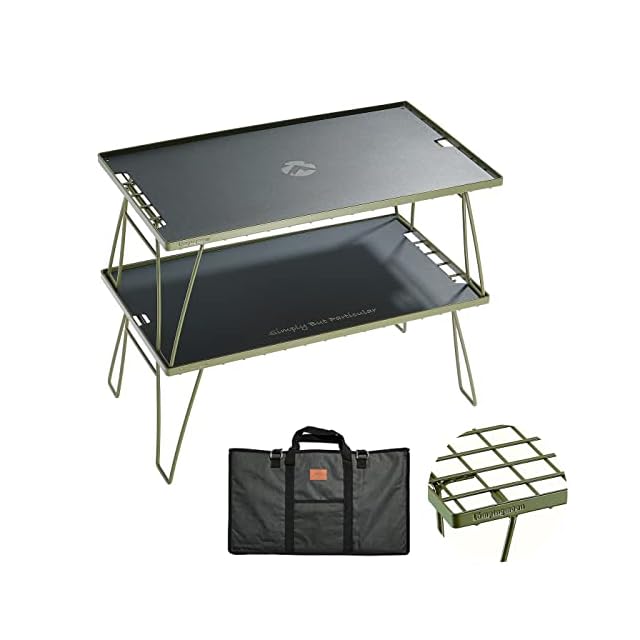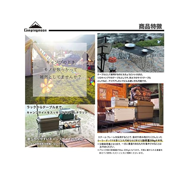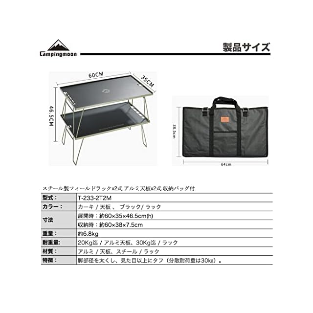 キャンピングムーン(CAMPING MOON) KAHKI フィールドラック カーキ色 グラウンドラック 折り畳みラック スチール製 収納バック付き 本体T-233 2点/アルミ天板2枚セット T-233-2T2M