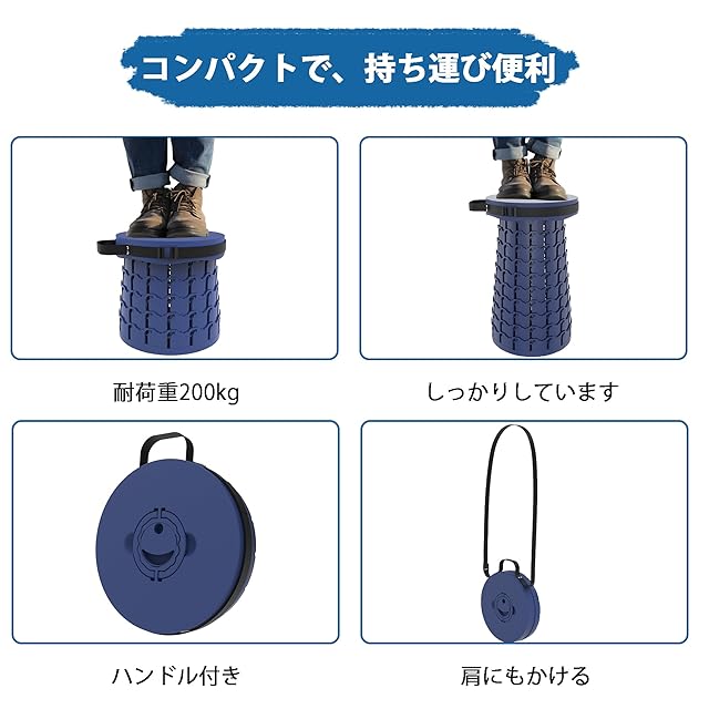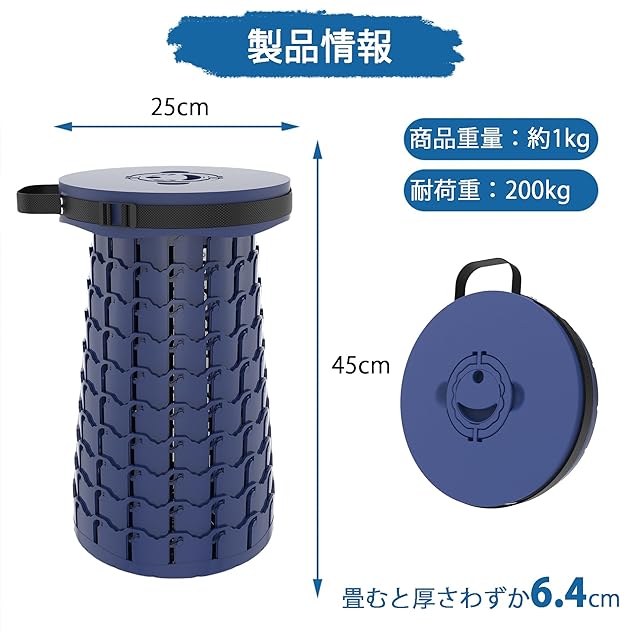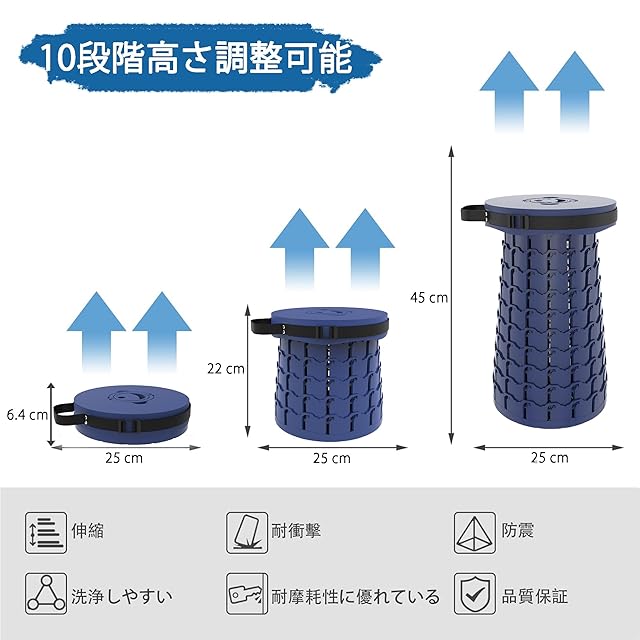 『伸縮式で高度自由調節ができて持ち運びも簡単!』 簡単で素早く開閉でき、高度自由調節アウトドアチェアです。展開する前にはまるいバックの形で、全然スツールの様子に見えないです。展開する後は高度45cmの椅子になり、更に好きな高度を選択して回転して調節できます。大人から子供までお使いいただけます。持ち運び楽々の軽量設計、コンパクトに畳める伸縮スツールで、面白くて、携帯も収納も便利です!