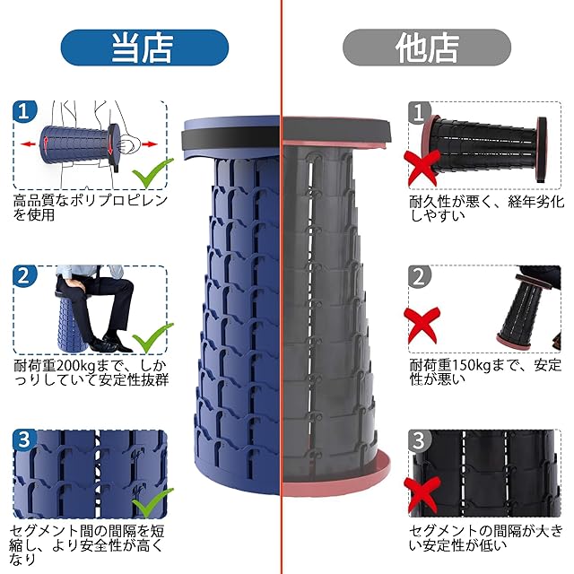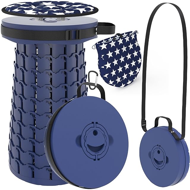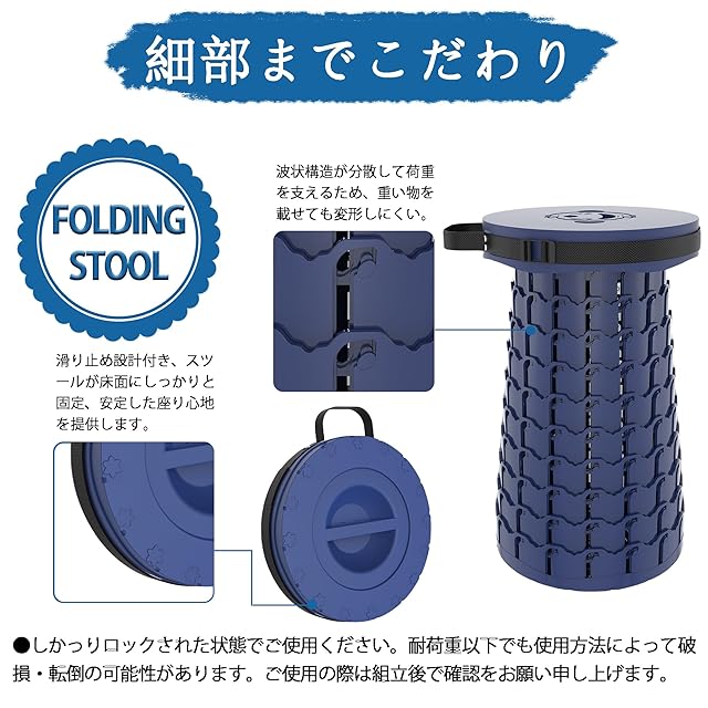 『高さ調節も自由自在折り畳みスツール』 セット内容:折りたたみスツール本体x1、星柄収納バッグx1、360度回転クッション、カラビナx1 最新第5世代折りたたみ椅子、より軽量化、より頑丈、より高い耐久性!