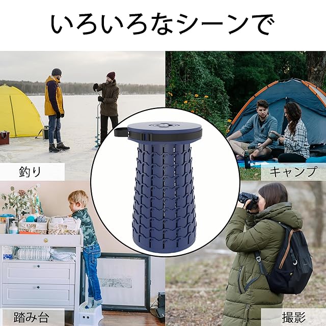 『伸縮式で高度自由調節ができて持ち運びも簡単!』 簡単で素早く開閉でき、高度自由調節アウトドアチェアです。展開する前にはまるいバックの形で、全然スツールの様子に見えないです。展開する後は高度46cmの椅子になり、更に好きな高度を選択して回転して調節できます。大人から子供までお使いいただけます。持ち運び楽々の軽量設計、コンパクトに畳める伸縮スツールで、面白くて、携帯も収納も便利です!