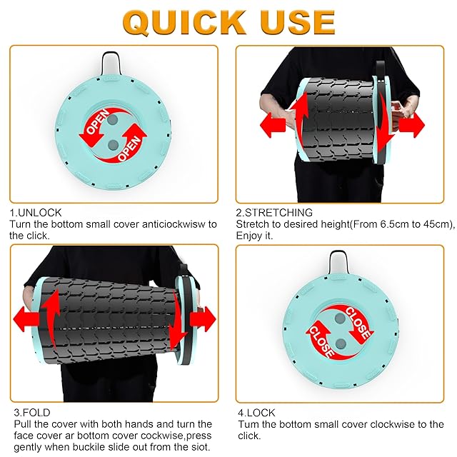 【伸縮式スツール・折畳可能・一秒開閉】:この折り畳み椅子は一瞬で引き出せる、持ち運びに非常に便利です。使用するときは、少しひねりながら両端を引いて1秒だけで折りたたみ椅子が完成です。収納するときは、逆方向に少しひねりながら両端を押すだけで収納できます。折り畳むと厚さがわずか6.5cmになり、収納バッグが付いておりますので、楽に持ち運びができます。商品詳細:折り畳み椅子+クッション+収納バッグ+カラビナ