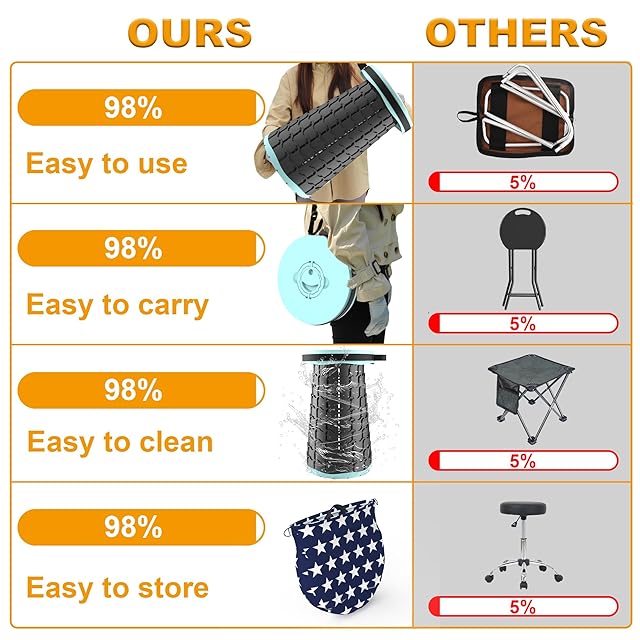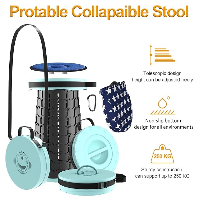 【使い方超簡単・耐荷重200KG】●収納するときは逆方向に少しひねりを入れながらスツールの両端を押すだけで一瞬で収納可能。●伸縮式チェア本体は1kgしかないにもかかわらず、頑丈なABSとポリアミドを採用したので、最大荷重は200kgにも達しています。軽量で携帯しやすくて、構造も安定しています。