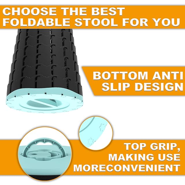 【軽量・コンパクト・耐荷重200kg】:伸縮式チェア本体は1kgしかないにもかかわらず、頑丈なABSとポリアミドを採用しており、最大荷重は200kgにも達しています。滑りにくさを追求した特殊デザインの底部を採用し、滑り止めので安全性を高めています。頑丈で環境にやさしいプラスチックPA + ABSを採用することにより強度が強くなり、軽量で携帯しやすくて、構造も安定しています。