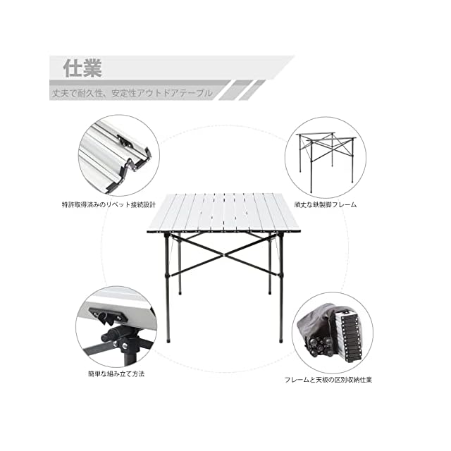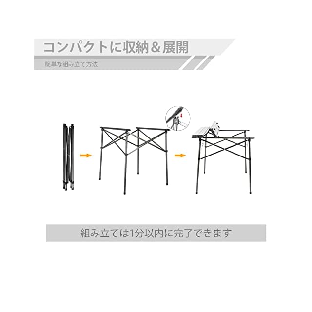 ●【組み立てはらくらく】①、ロールテーブルのフレームは簡単な収束式タイプなので、女性一人でも気軽に間もなく広げや収納できます! ②、天板の各部分は通常の老化しやすい弾力ロープの代わりに、複雑なネイルデザインで接続されています。