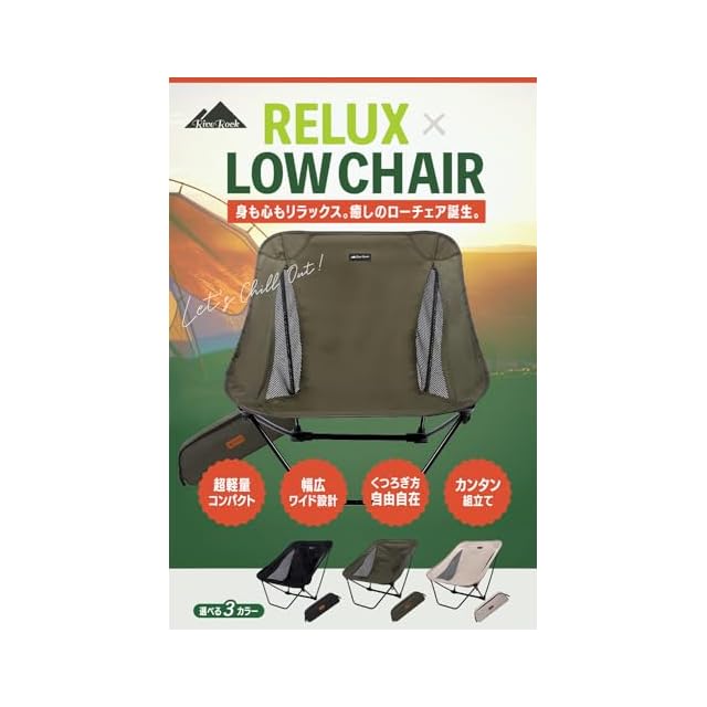 RiveRock (リバロック) アウトドアチェア ローチェア グラウンドチェア 軽量 ワイド座面 あぐら 【国内耐荷重試験合格】【安心保障】(アーミーグリーン)