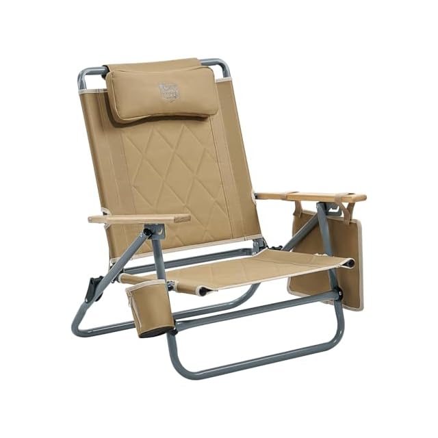 TIMBER RIDGE アウトドアチェア 折りたたみ椅子 3段リクライニング 焚き火チェア 難燃 ローチェア 携帯椅子 耐荷重150kg 天然木制肘掛 キャンプ 屋外 バーベキュー
