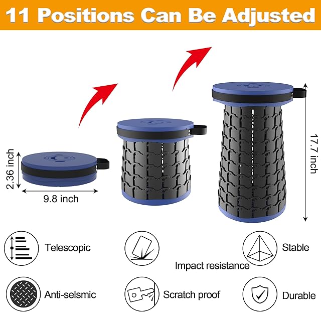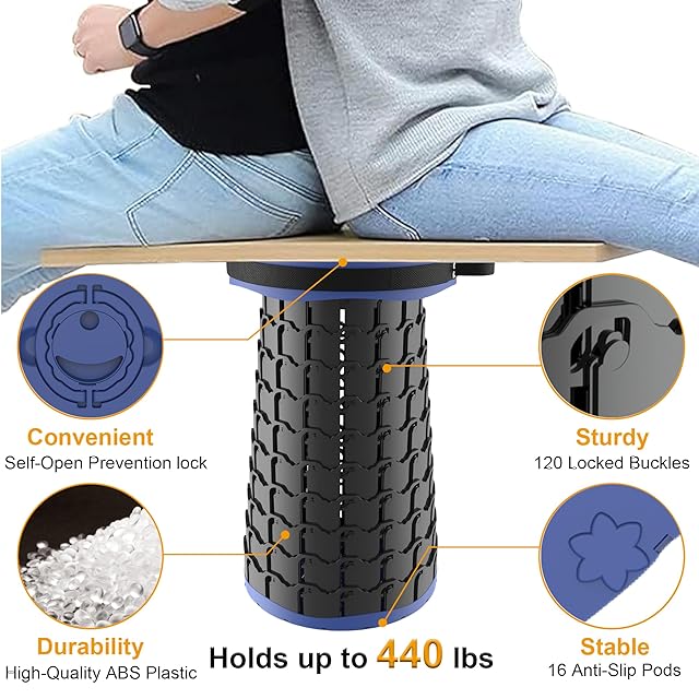 【軽量・コンパクト・耐荷重200kg】:伸縮式チェア本体は1kgしかないにもかかわらず、頑丈なポリプロピレンを採用しており、最大荷重は200kgにも達しています。滑りにくさを追求した特殊デザインの底部を採用し、滑り止めので安全性を高めています。頑丈で環境にやさしいプラスチックPPを採用することにより強度が強くなり、軽量で携帯しやすくて、構造も安定しています。