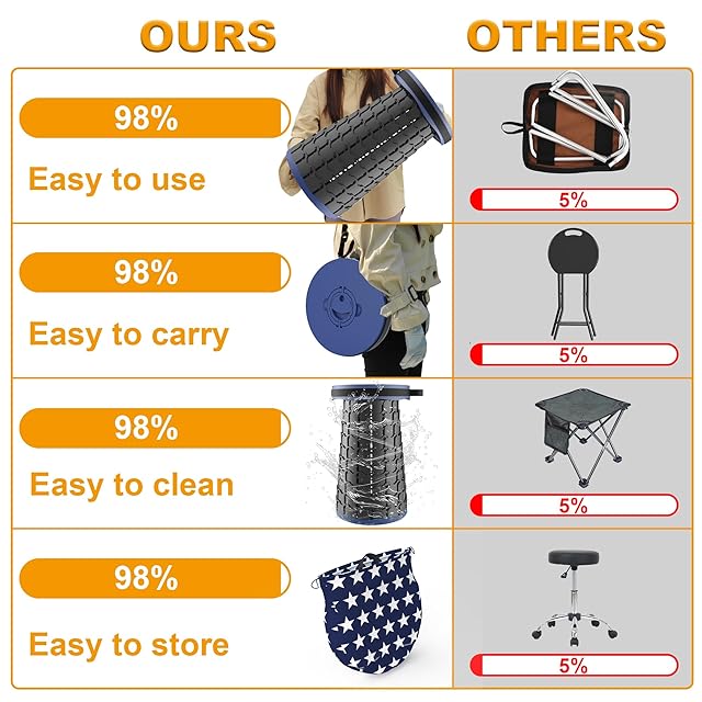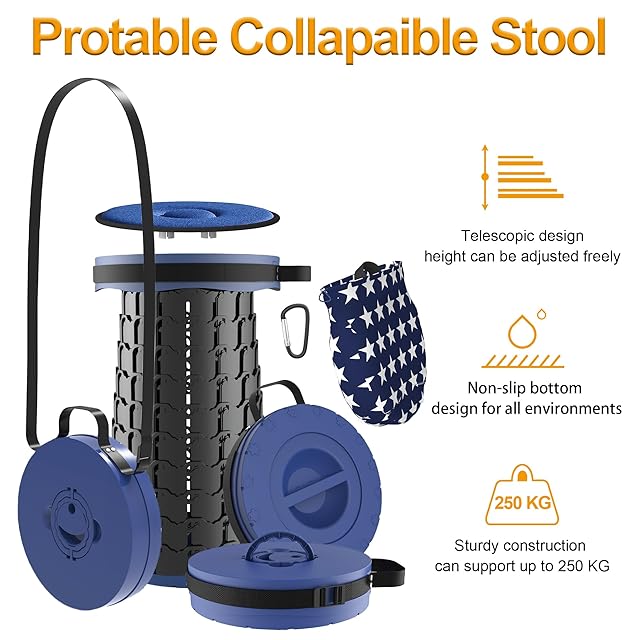【使い方超簡単・耐荷重200KG】●収納するときは逆方向に少しひねりを入れながらスツールの両端を押すだけで一瞬で収納可能。●伸縮式チェア本体は1kgしかないにもかかわらず、頑丈なABSとポリアミドを採用したので、最大荷重は200kgにも達しています。軽量で携帯しやすくて、構造も安定しています。