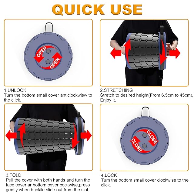 【伸縮式スツール・折畳可能・一秒開閉】:この折り畳み椅子は一瞬で引き出せる、持ち運びに非常に便利です。使用するときは、少しひねりながら両端を引いて1秒だけで折りたたみ椅子が完成です。収納するときは、逆方向に少しひねりながら両端を押すだけで収納できます。折り畳むと厚さがわずか6.5cmになり、収納バッグが付いておりますので、楽に持ち運びができます。商品詳細:折り畳み椅子+クッション+収納バッグ+カラビナ