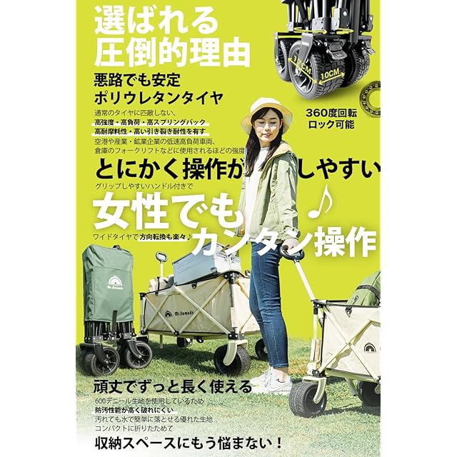 ✅【悪路でも安定するポリウレタンタイヤ】高強度、高スプリングバック、高耐摩耗性、高い引裂き耐性などの特性を有したポリウレタンタイヤを採用。重い荷物をのせて段差のある場所、芝生や凸凹道、ぬかるみ、舗装路、砂利道、砂浜などでも安定して進めます。