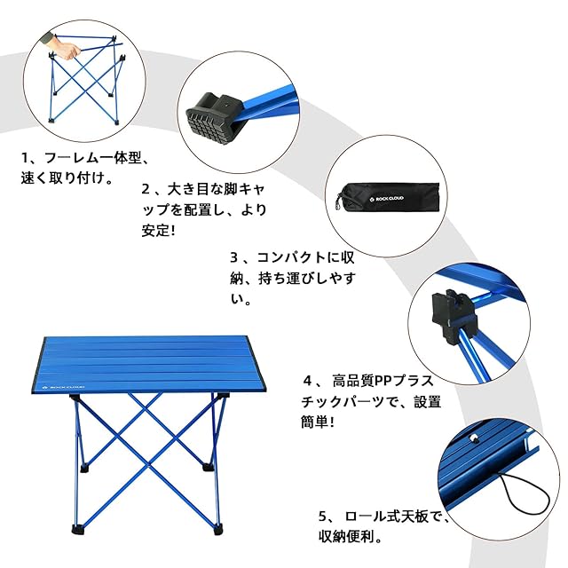 Rock Cloud キャンプテーブル 折りたたみ 41x56cm アルミ ロールテーブル コンパクト 超軽量 アウトドア 運動会 BBQ ハイキング ビーチ 収納袋付き