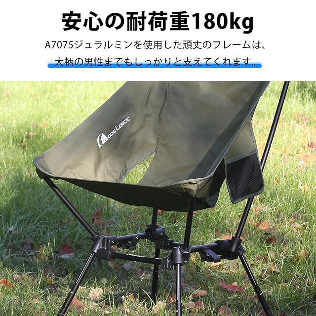 【静止耐荷重180KG】アルミ合金の中でもトップクラスの強度を持つA7075超々ジュラルミンを使用し、 椅子の耐久性をしながら、180kgの静止耐荷重も実現しています。