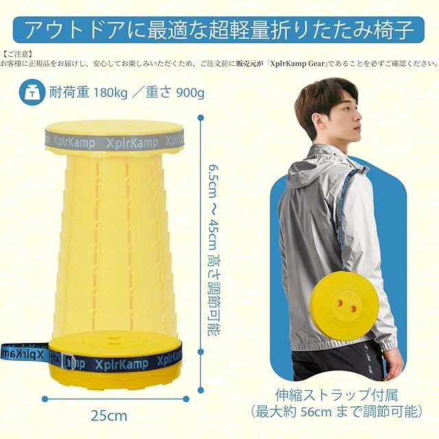 XplrKamp 折りたたみ椅子 伸縮式 超軽量900g 耐荷重180kg コンパクト 日本語マニュアル付き 持ち運び アウトドアチェア 防水 1秒開閉可能 10段階調整 ショルダーストラップ付き キャンプ/万博/釣り/夏祭り/花火大会/スポーツ観戦/バーベキュー/屋内屋外兼用(2, ゴールド)