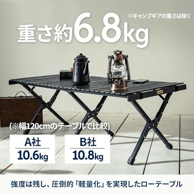 ✅【従来品より約30%軽量化】 ブナ材は頑丈だけれど、重いのが難点。そこで天板の厚みや仕様木材を見直し、従来製品よりも約30%の軽量化を実現しました。女性やソロキャンパーにも使いやすく、持ち運びやすくなりました。