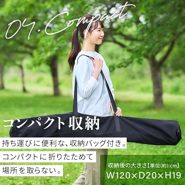 製品サイズ(cm):[使用時]幅約121×奥行約60×高さ約44[収納時]幅約129×奥行約20×高さ約19(収納袋込み)