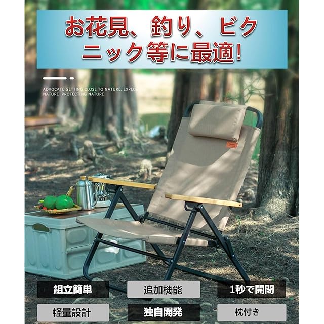 アウトドア キャンプ チェア 軽量 折りたたみ 椅子四段調節 耐荷重 コンパクト 携帯便利 キャンプ椅子 お釣り お花見 登山 TJ (コーヒー色, 1)