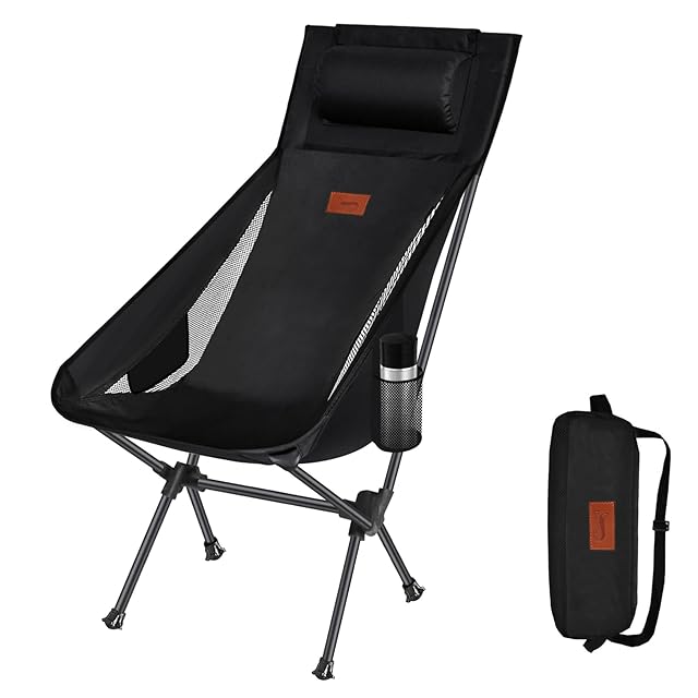 DesertFox アウトドアチェア 折りたたみ 枕付き 超軽量 【独自開発のカップホルダー】 【耐荷重150kg】 キャンプ椅子 コンパクト イス ハイバック 椅子 収納袋付属 お釣り 登山 携帯便利 0088 (ブラック,Large)