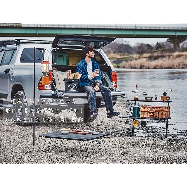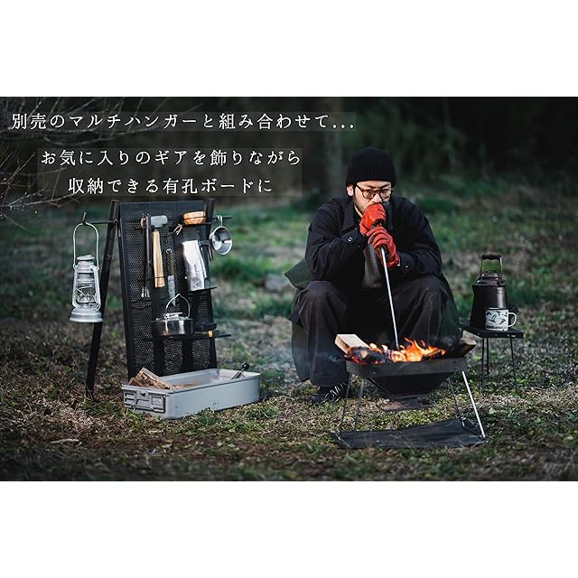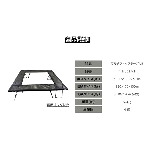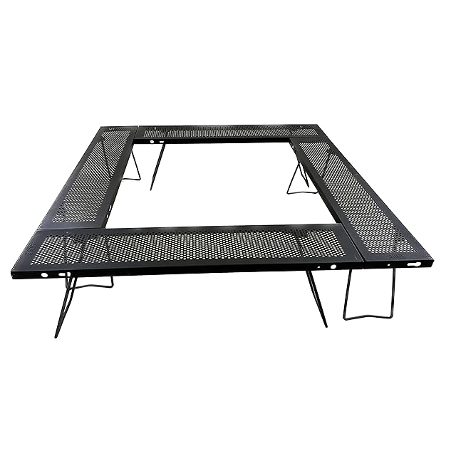 尾上製作所(ONOE) マルチファイアテーブルIII MT-8317-III [バーベキューコンロを囲んで使える 黒 専用バック付 連結ジョイント付属 バーベキューコンロ 焚火台 グループキャンプ BBQ]