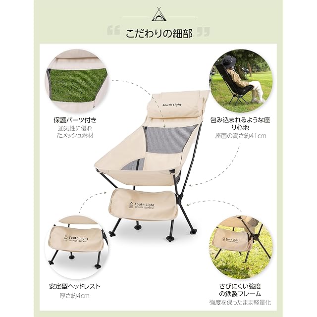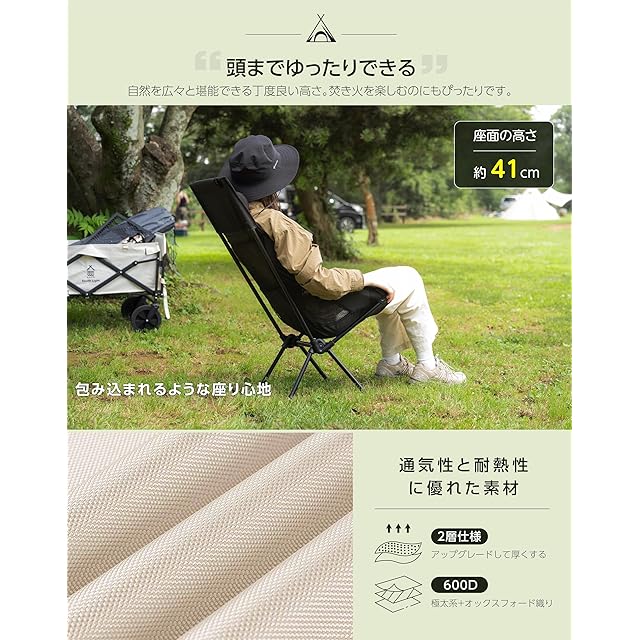 アウトドアチェア 折りたたみ 枕付き 超軽量 2025新型 ハイバック 椅子 キャンプ チェア コンパクト 折り畳み 耐荷重150kg 背もたれ 収納袋付 お釣り バーベキュー 登山 持ち運び便利 2色【hidemasa】 (アイボリー, 1個)