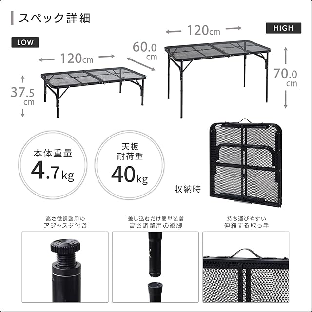 [本体サイズ]幅120×奥行60×高さ37.5/70cm 重量4.7kg