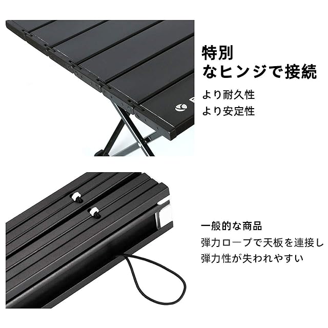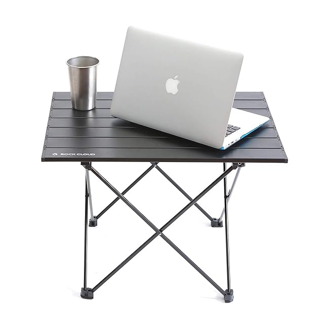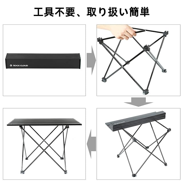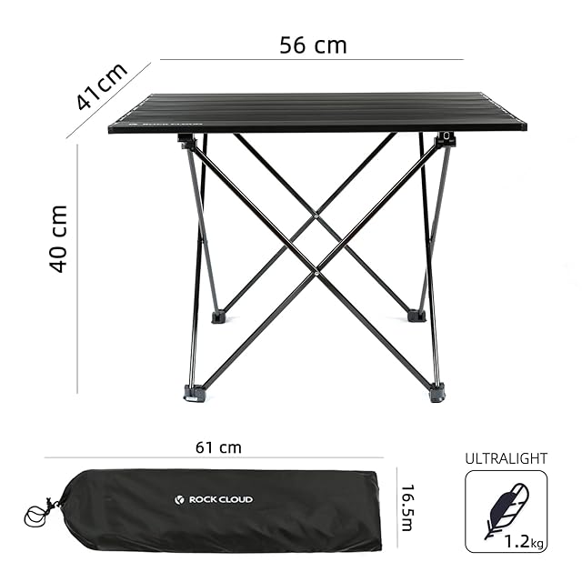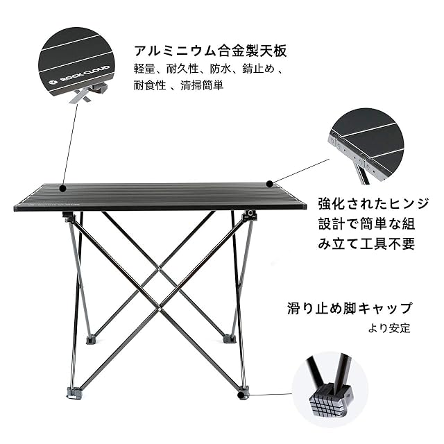 Rock Cloud キャンプテーブル 折りたたみ 56x41cm アルミ ロールテーブル コンパクト 超軽量 アウトドア 運動会 BBQ ハイキング ビーチ 収納袋付き ブラック