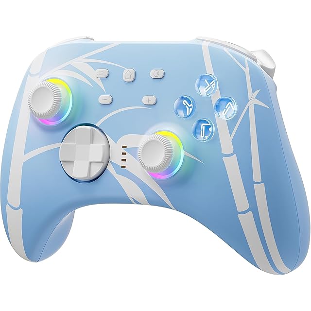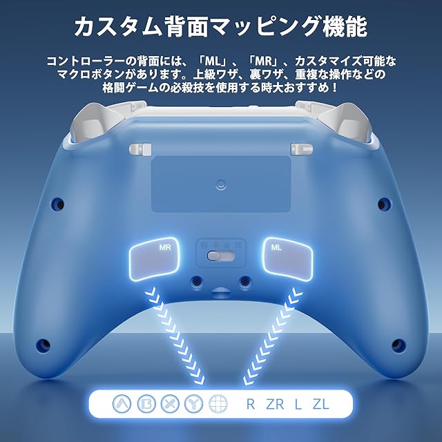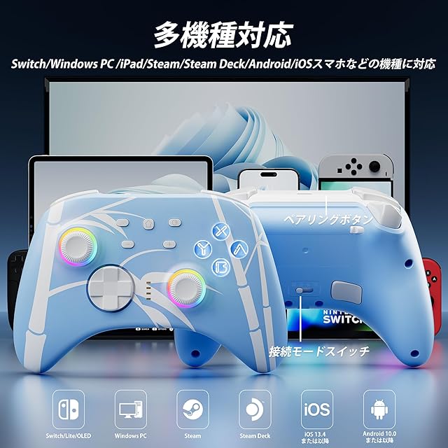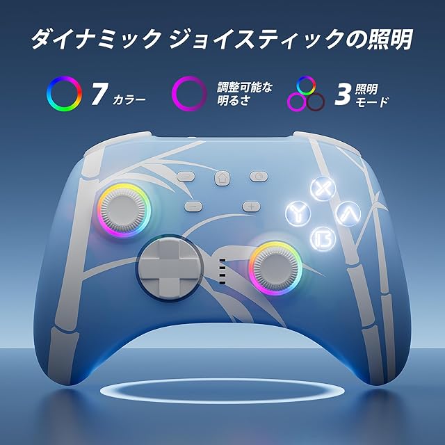 Mytrix Switch ホール コントローラー 無線 ゲームコントローラー ホール効果スティック/トリガー (ドリフトなし) スイッチ プロコン 背面ボタン付き マクロ機能 RGBライト 6軸ジャイロ PC用ゲームパッド Switch/Lite/有機ELモデル/PC/Steam/iOS/Android 用 日本限定 竹 ブルー