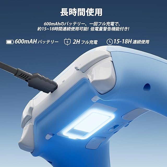【長時間使用&一年安心】内蔵600mAh電池、急速充電対応、約2時間でフル充電。一回フル充電で、約18時間連続使用可能です。低電量警告機能付き;一年安心、日本語サポート、何がご不明な点がございましたら、お気軽にお問い合わせください。完備なカスタマサービスは年中無休、24時間に対応させていただけます!