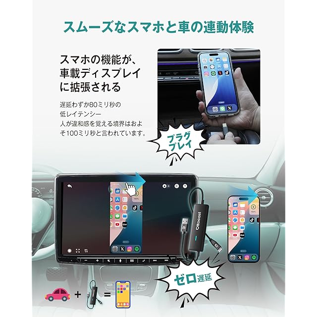 商品名:【公式】オットキャスト Ottocast Mirror Touch【カーナビにスマホの逆方向制御を実現】ミラータッチ 双方向制御 車載ミラーリング カーナビからスマホの操作が可能 ワイヤレスCarPlayアダプター プラグプレイ 【技適取得済み品】