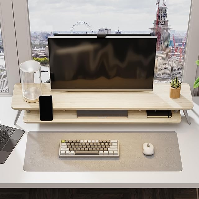 Fenge モニター台 卓上 机上台パソコン台 机上ラック 108cm横幅 2段 木製天板 アルミニウム製脚 デスクトップ用 机上 モニタースタンド 机上台 pcモニター台 パソコンラック 卓上 収納 整理整頓 オークG04A2123C