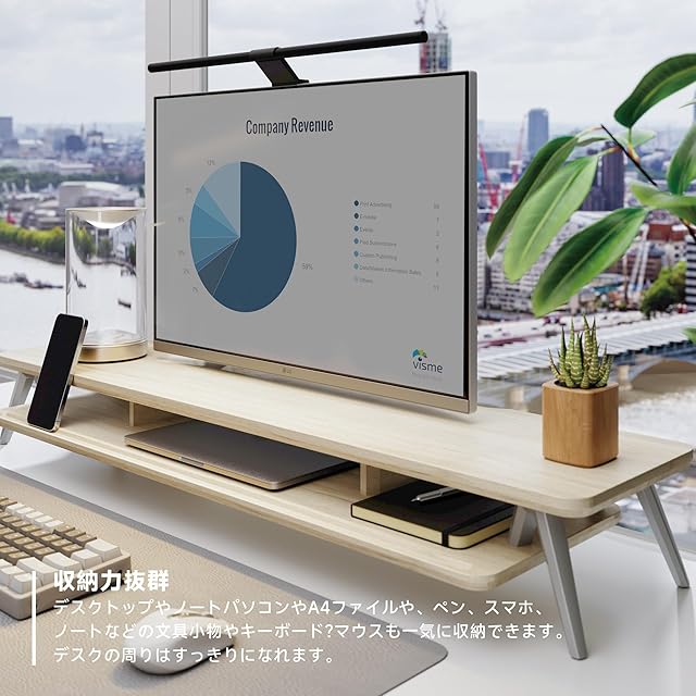 【小さめなPC台よりデスクにフィット】:幅108cmの卓上モニター台は幅120/140cmのデスクとピッタリ合います。普通の小さめな机上台より仕事デスクにフィット、より快適なオフィス空間を実現されます。