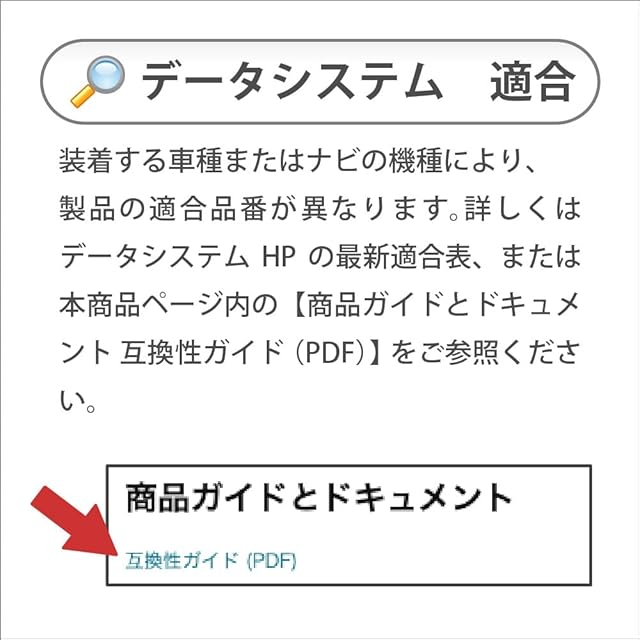 装着する車種またはナビの機種により、製品の適合品番が異なります。詳しい適合はデータシステムのホームページをご参照ください。