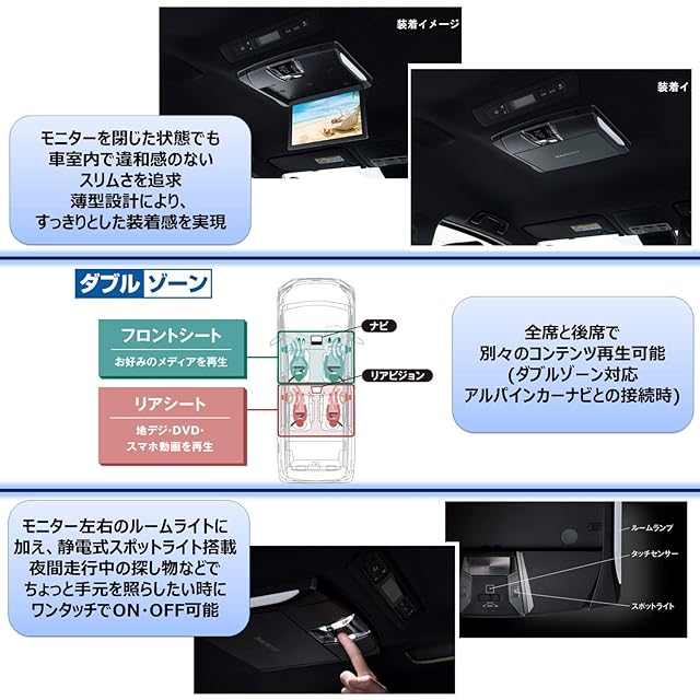 アルパイン(ALPINE) 10.1インチ フリップダウンモニター ルームライト有り ブラック RSH10XS-R-B