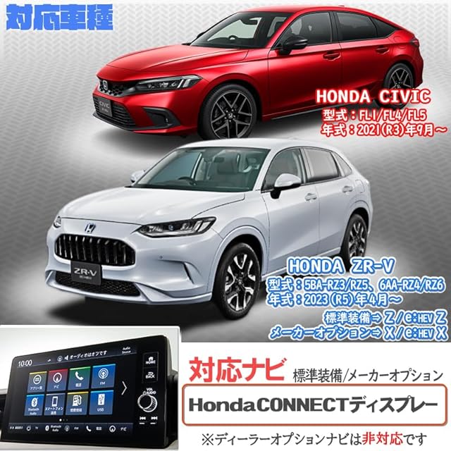 【対応車種】 ◎HONDA 新型ZR-V 標準HondaCONNECTディスプレー搭載車 年式:2023(令和5)年4月~ 型式:5BA-RZ3/RZ5、6AA-RZ4/RZ6 「HondaCONNECTディスプレー」対応 Z/e:HEV Z(標準装備) X/e:HEV X(メーカーオプション)
