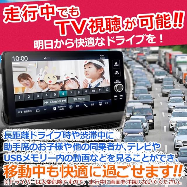 走行中でもTVを見れる! 長距離ドライブ時や渋滞中にお子様や、他の同乗車がテレビやUSBメモリー内の動画を見ることができ、移動中も快適に過ごせます!!
