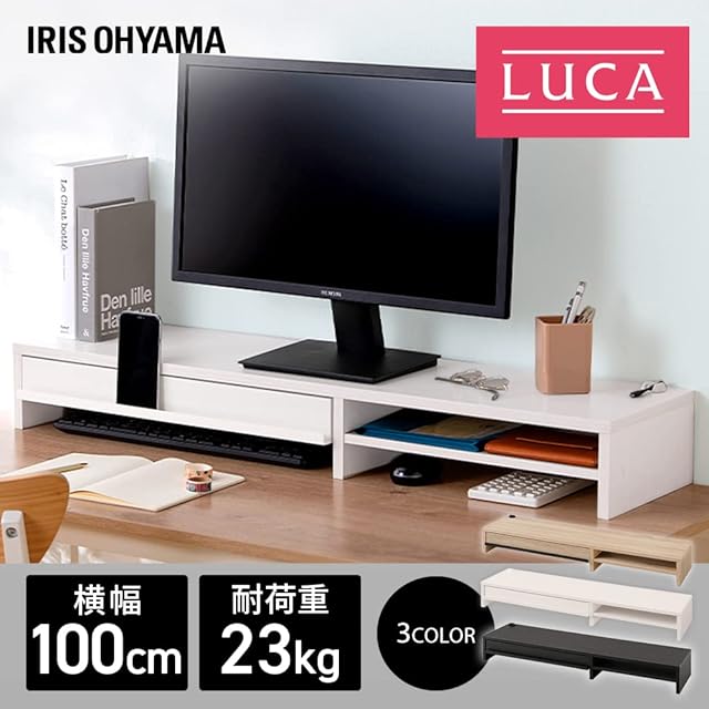 アイリスオーヤマ デスクがスッキリするモニター台 幅100cm 引出し付き ブラック 収納領域の大きなワイド設計 目線が上がるので首肩の負担が軽減 インテリアになじむシンプルデザイン ほこりが溜まりにくいフラット設計 モニター台 パソコン台 ディスプレイ台 机上台 PC台 プリンタ台 キーボード マウス収納 幅約100×奥行約26.4×高さ約13cm MNS-1000H