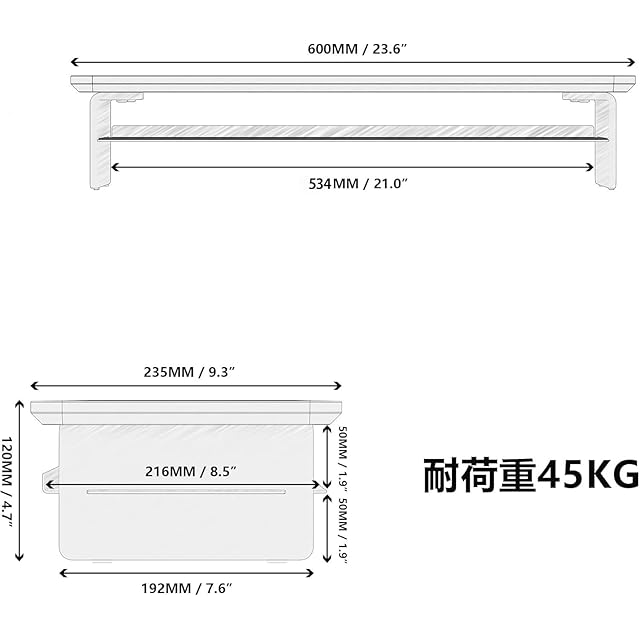 【商品仕様&12か月品質付き】モニター台のサイズ:600*235*120MM,天板の厚さ18MM;脚: アクリル 本体重量:約4.2kg 最大耐荷重:45kg 組み立て式。期間内に、取り扱い説明書に準じた使用状態で故障や不具合が生じた場合は当社の判断により交換させていただきます。