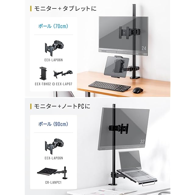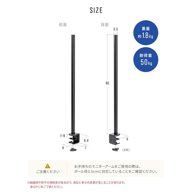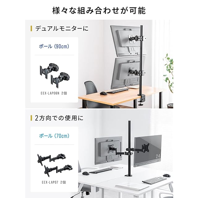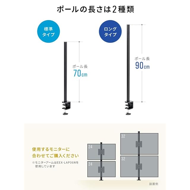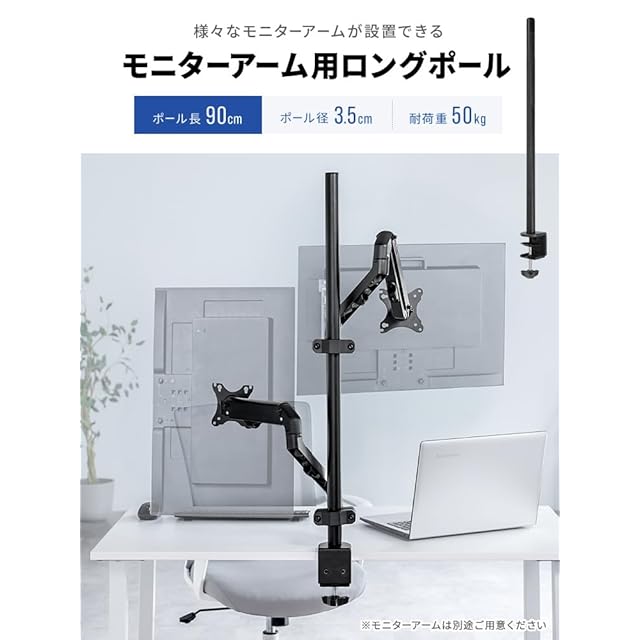 【長さ90cmで広がる可能性】モニター設置の自由度が大幅にアップ!90cmのロングポールで、デュアルやトリプルモニター環境を簡単に構築可能です。
