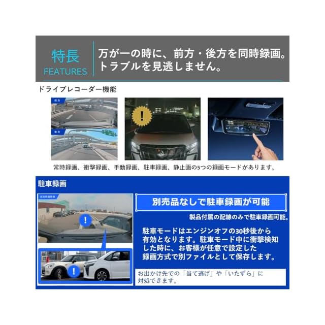 前後のカメラで映像録画にも対応した高画質デジタルミラー。