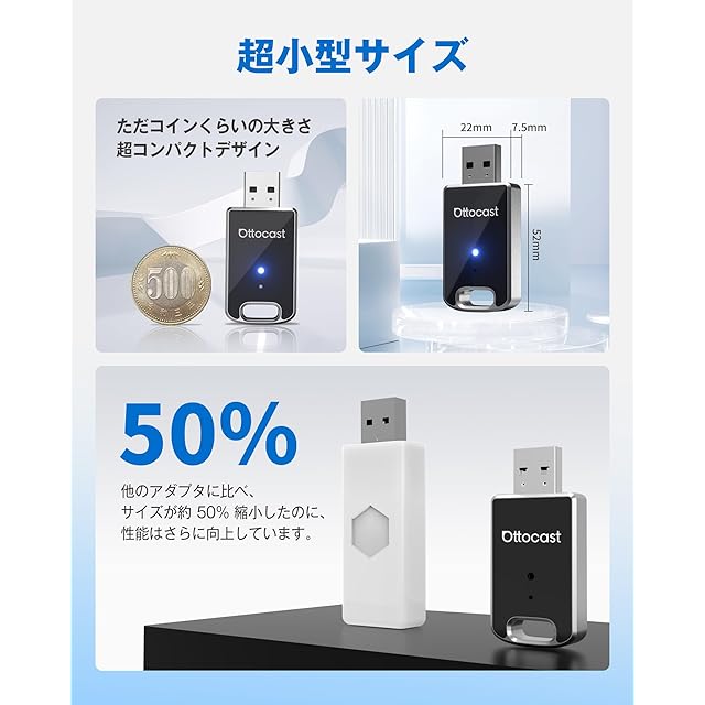 【公式】オットキャスト ミニ OTTOCAST MINI 2025最新 CarPlay&AndroidAuto ワイヤレス化 アダプター 自動接続 98%以上の車種適用 アンドロイドオート&カープレイ無線化接続 接続簡単 Bluetooth/音楽/音声コントロール/GPSナビゲーション 【技適取得済み品】