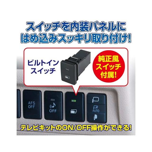 走行中は映像が映らない純正ナビ。このテレビキットシリーズがあれば、走行中でもテレビ/DVDが楽しめます。純正風スイッチで目立たずスマートに取り付け
