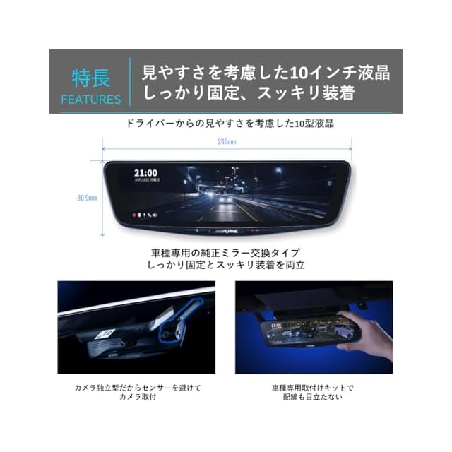 アルパイン(ALPINE) ドライブレコーダー搭載 10インチデジタルミラー(純正ミラー交換タイプ/車内リアカメラ) DVR-DM1000A-IC 【取付キット別売】