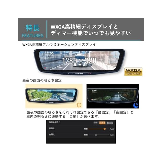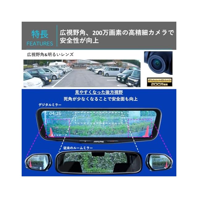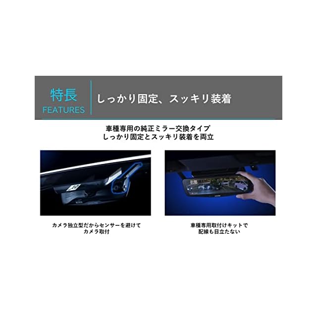 前後のカメラで映像録画にも対応した高画質デジタルミラー。