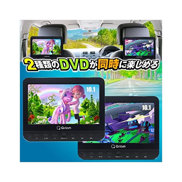 [山善] ポータブル DVDプレーヤー ヘッドレストモニター 10.1インチ 2台セット ツインモニター 車載 CPRM対応 リモコン付き CPD-M101TMDR(B)