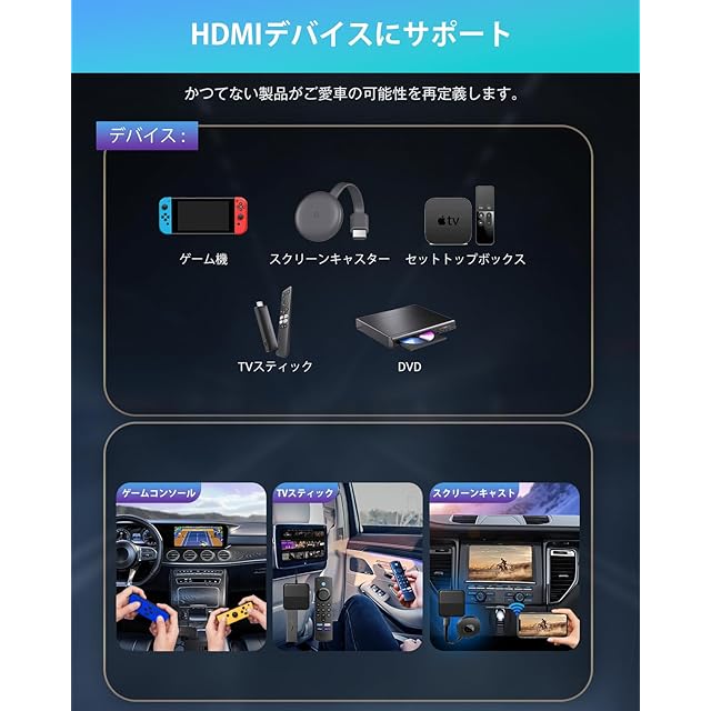 ★【 HDMIマルチメディアアダプター 】 TV スティックやゲームコンソールやTVボックスなどのHDMI出力のデバイスをこのアダプターのHDMI入力端子に接続すると、車を映画館に変えて、多様のコンテンツと最高のエンターテイメント体験を楽しめます。長時間ドライブや旅行でも運転と同乗の体験をさらにパワーアップします。