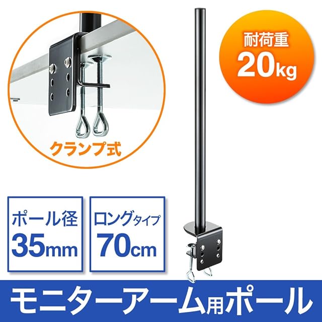 イーサプライ モニターアーム ポール ロング 長さ70cm 直径3.5㎝ クランプ式 支柱のみ デスク設置 EEX-LAP01N