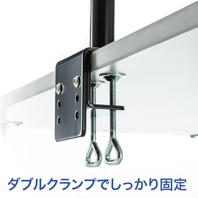 デスクへの取付けはクランプ式になっています。厚さ18~80mmの天板に対応しています。